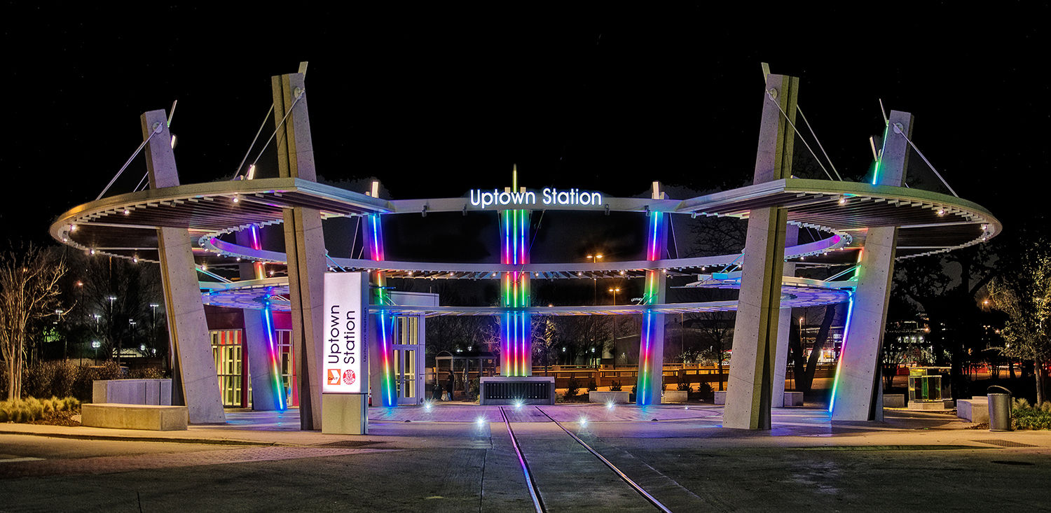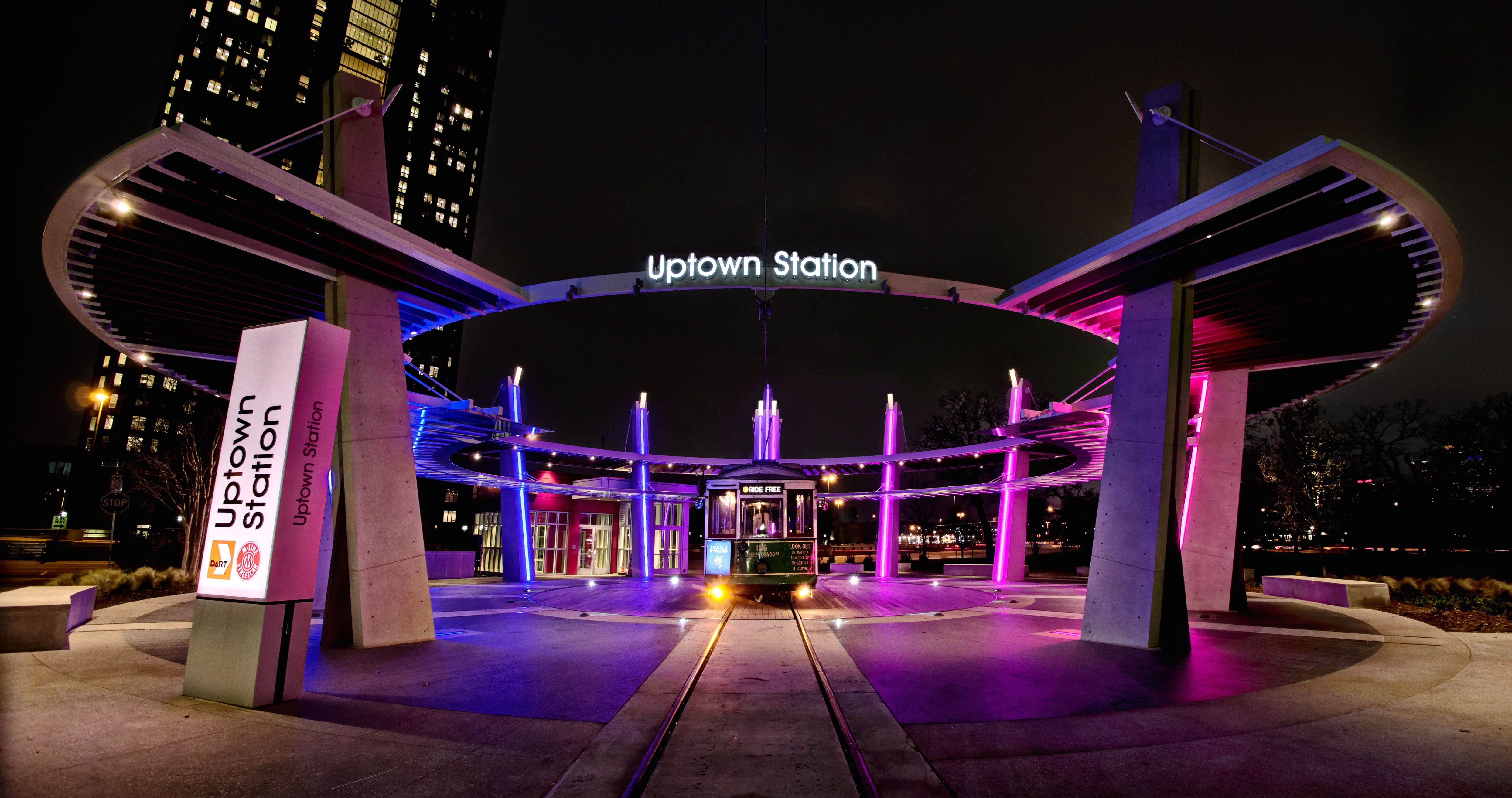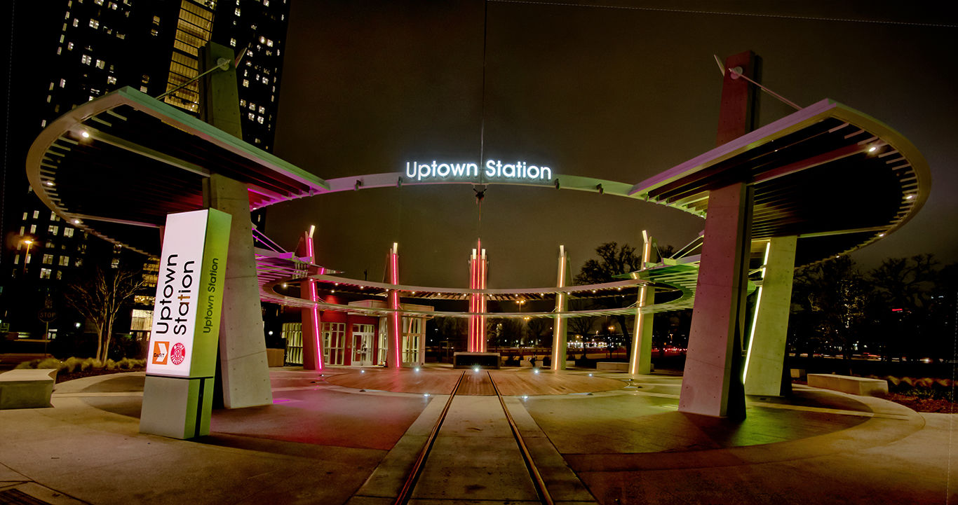 Cityplace Station Square and Urban Park consists of a trolley turnaround station, public park, and art installations. This site is located in a lively walk-able neighborhood of downtown Dallas. The trolley is a source of transportation and local experience in the neighborhood for residents and visitors alike. The entrance to a DART station is located adjacent to the trolley station. A forty foot tall sculpture by Cliff Garten stands in the center of the plaza across the park from the trolley station. The trolley station and Garten sculpture have become landmarks of the neighborhood for pedestrians and motorist on the adjacent highway.