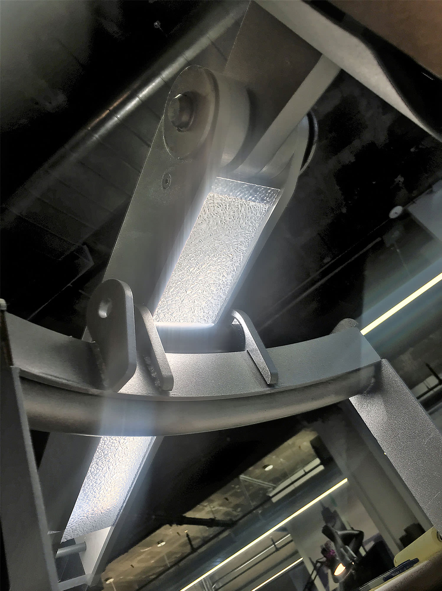 This video shows a compilation of the chandelier deploying and retracting within the space. The last scene shows the chandelier view from below.