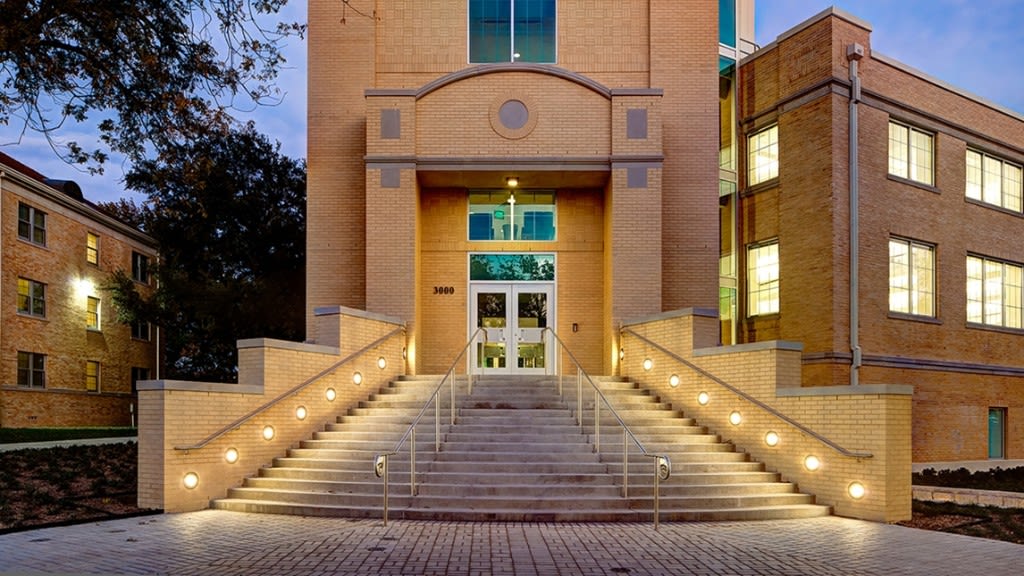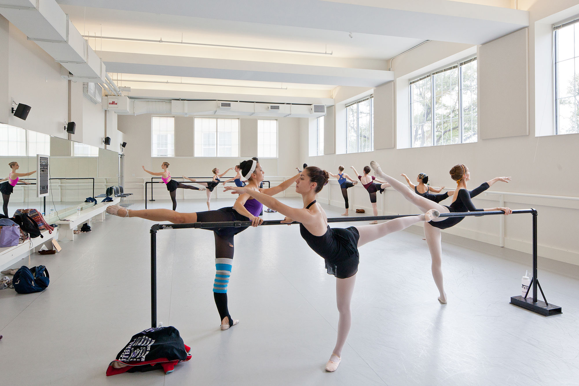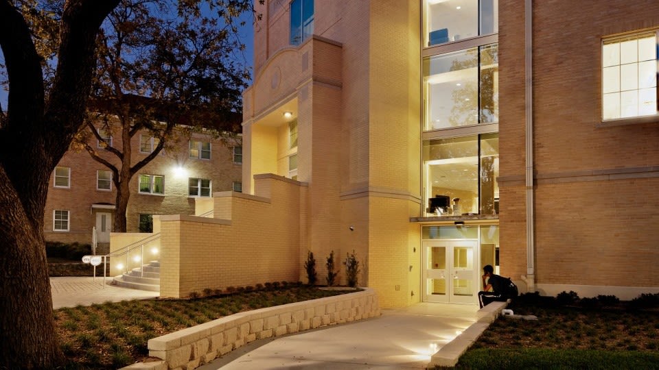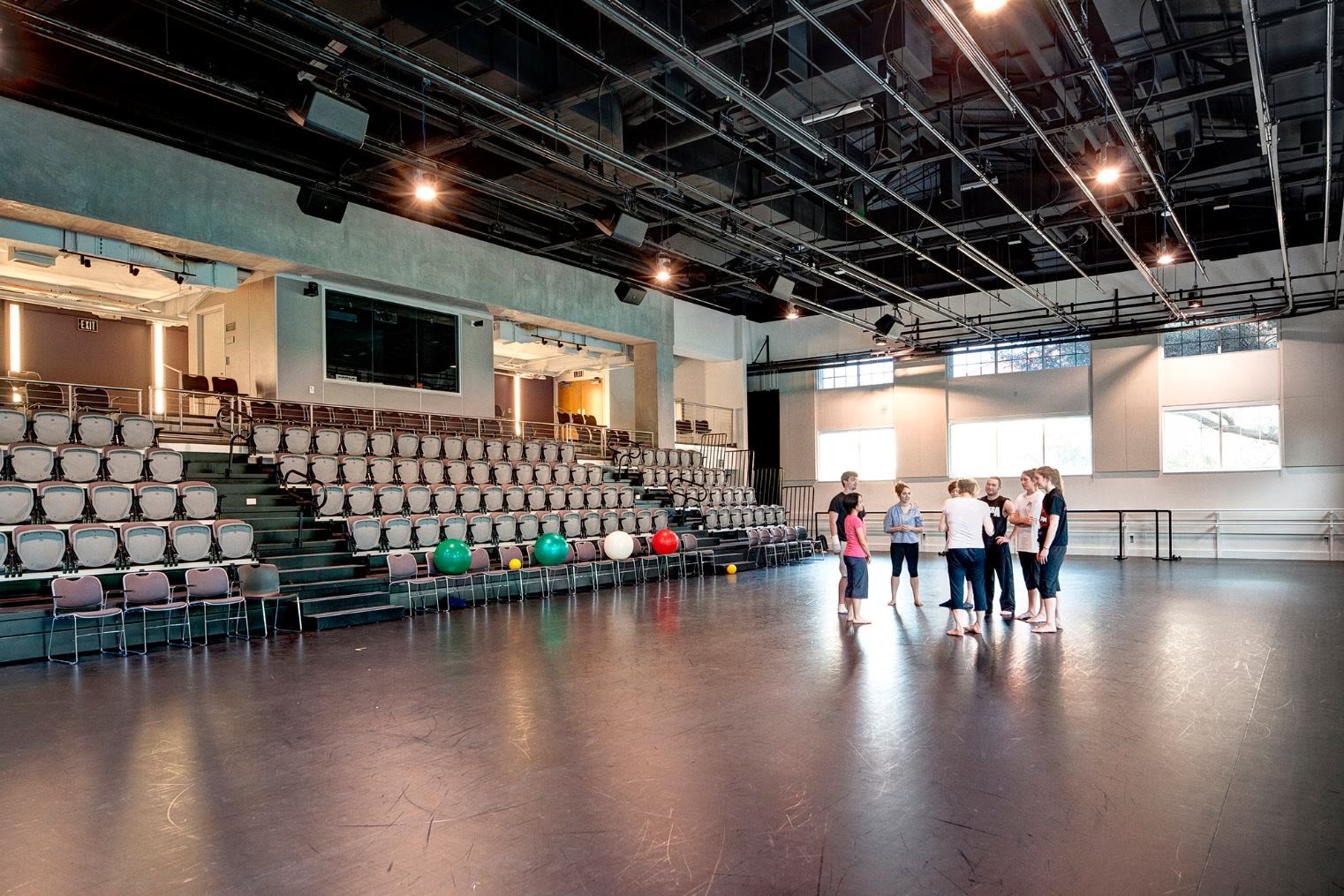 At Texas Christian University the old dance building received a major renovation in all three dance studios, the student lounge and entry. In addition to providing a modern aesthetic the lighting is now fully controllable so that the practice environment can be tuned to be more like the performance venue. LED and fluorescent solutions provided a significant energy and maintenance savings. Lighting integrated into dropped perforated panels and vertical surfaces serves to divert attention away from some building system and structural oddities. Strategically placed accent lighting helps reveal the architecture in unique ways.